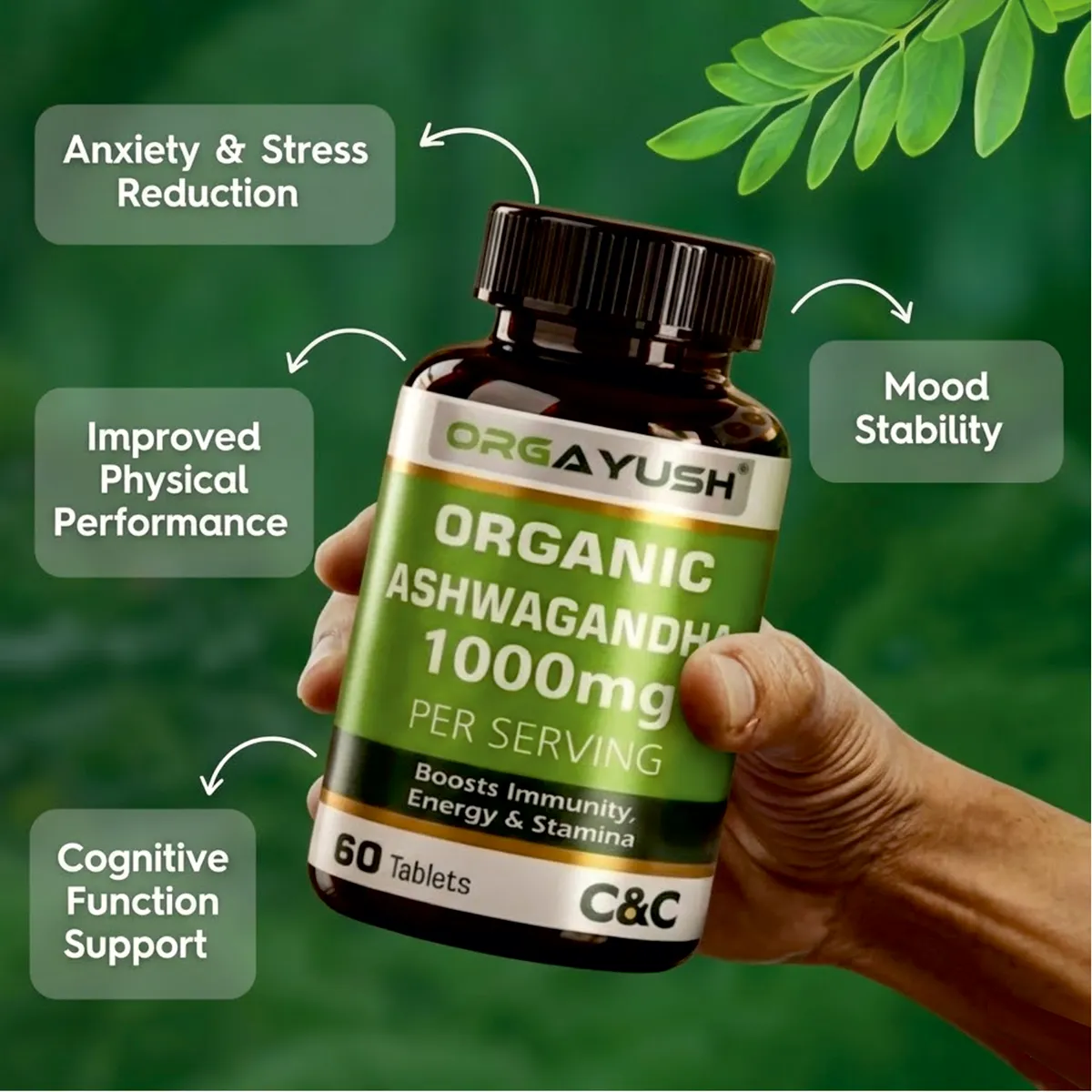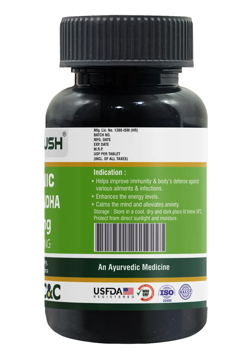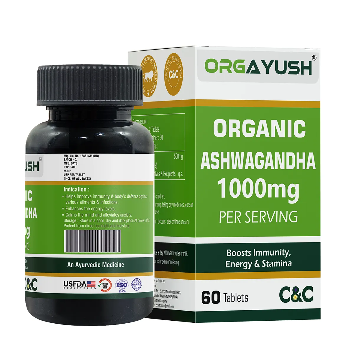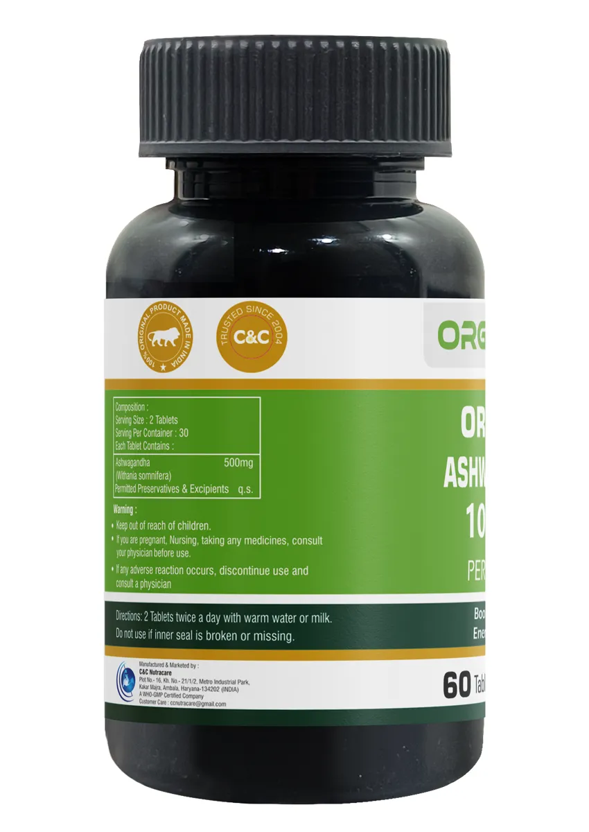 Specification: Organic Ashwagandha 1000 mg per Serving Tablets