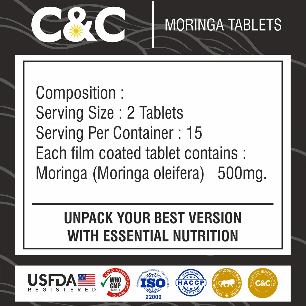 - Moringa (Moringa oleifera) : 500mg