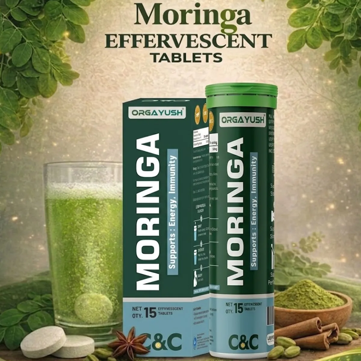Orgayush Organic Moringa Effervescent Tablets