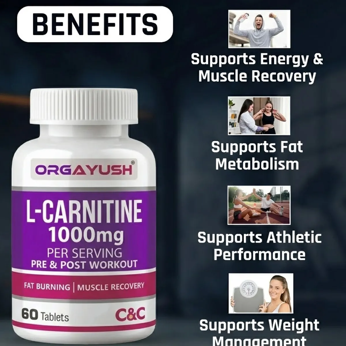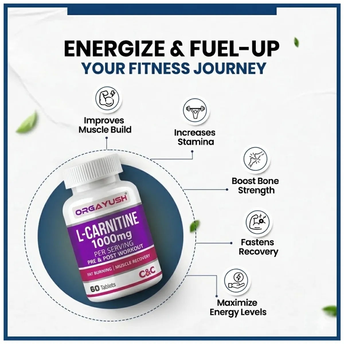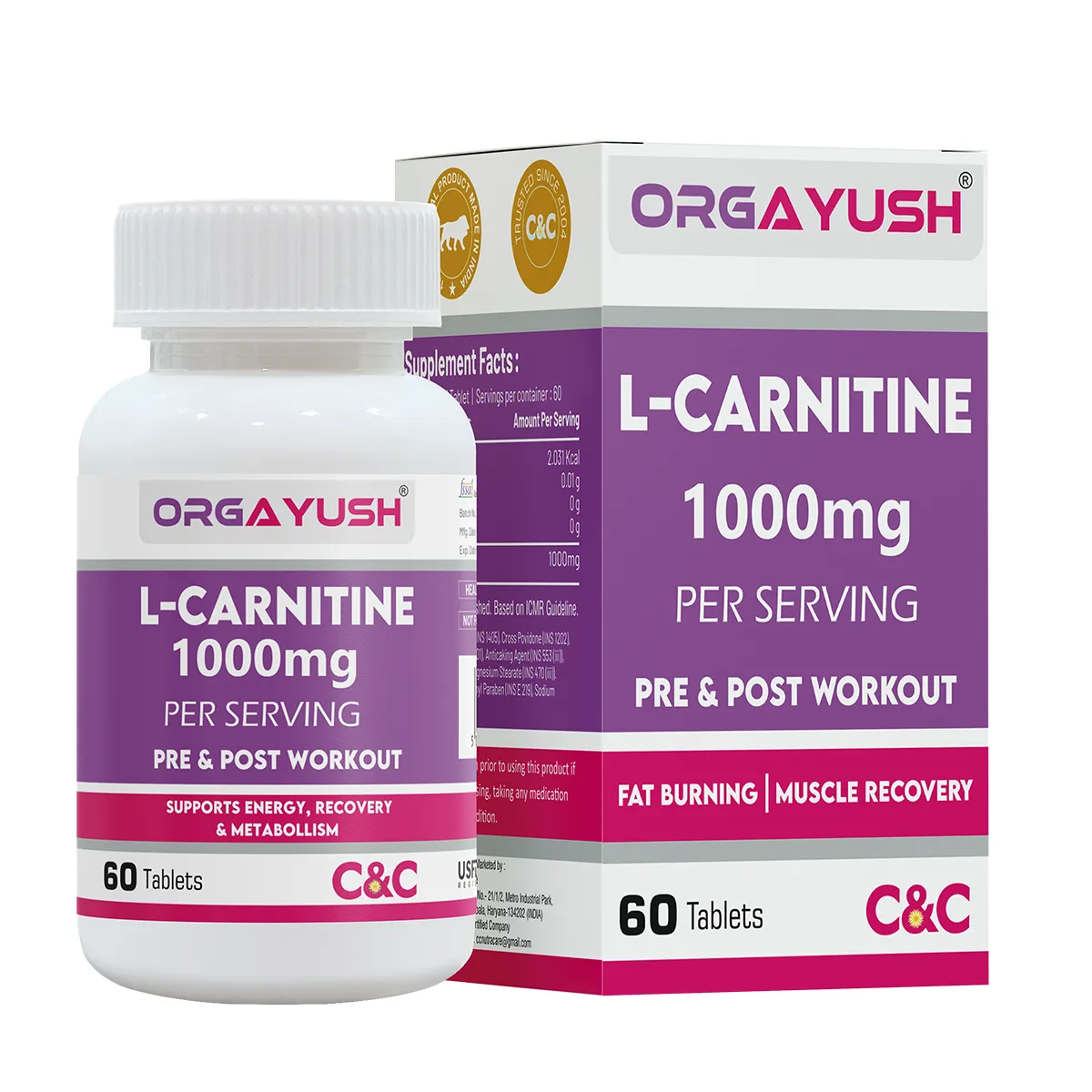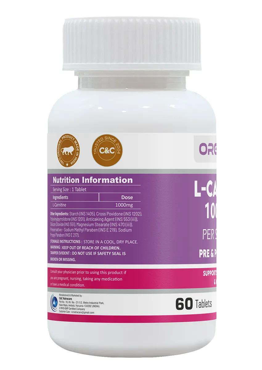 Orgayush L-Carnitine 1000mg is a high-strength formulation designed to support energy production, fat metabolism, and exercise performance. Ideal for fitness enthusiasts and individuals managing weight goals, this advanced nutraceutical helps convert stored fat into usable energy.